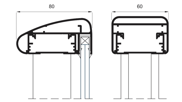 Presklené zábradlie s oddeleným madlom: