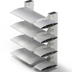 Systém protislnečnej ochrany fasád využíva lisované hliníkové lamely, pevné alebo nastaviteľné, ktoré regulujú svetlo a znižujú potrebu chladenia. Eliptický tvar umožňuje montáž vertikálne či horizontálne a slúži aj ako architektonický dekoratívny prvok.
